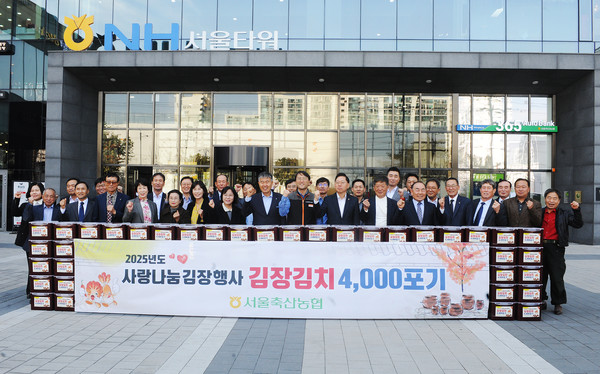 서울축산농협(조합장 진경만)은 지난 13일 본점(NH서울타워) 앞마당에서 지역의 어려운 이웃을 돕기 위한 ‘2025 사랑나눔 김장행사’를 개최했다.