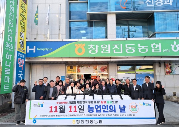 창원진동농협(조합장 김성재)은 지난 11일 농업인의 날을 맞아 가래떡 나눔행사를 열었다.
