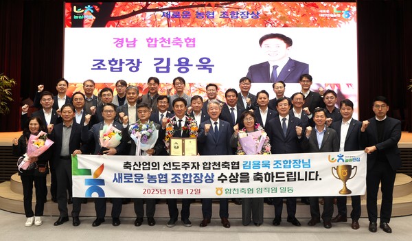 김용욱 합천축협 조합장이 지난 12일 농협중앙회로부터 변화와 혁신을 통한 ‘새로운 대한민국 농협’ 구현에 기여한 공을 인정받아 축협으로는 유일하게 ‘새로운 농협 조합장상’을 수상했다.