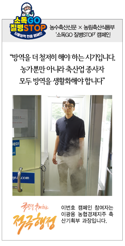 [농수축산신문=농수축산신문] 이번호 캠페인 참여자는 이광용 농협경제지주 축산기획부 과장입니다. 농수축산신문 webmaster@aflnews.co.kr 다른기사 보기 저작권자 © 농수축산신문 무단전재, 재배포 및 AI학습 이용 금지 당신만 안 본 뉴스 [AFL칼럼] ASF 백신 개발, ‘K-방역’의 새 지평 열까 서울 영등포농협 사회공헌실천재단, '가정의 달 이벤트' 경품 증정식 개최 예산군, ‘힐링·건강·나눔’으로 주민 삶의 질 높인다 영등포농협 사회공헌실천재단, 동작구 '사랑의 온도탑' 제막식 '1호 주자'로 나서 지역사회 온기 확산 물꼬 터 차기 농협 축산경제 대표이사 선거 3파전 영농형태양광, 임차농 보호장치 마련을…정부, 투기 방지법 ‘밑그림’ [Issue+] 2026 국제곡물시장 전망 [AFL칼럼] ASF 백신 개발, ‘K-방역’의 새 지평 열까 댓글삭제 삭제한 댓글은 다시 복구할 수 없습니다. 그래도 삭제하시겠습니까? 비밀번호 닫기 기사 댓글 0 댓글 접기 로그인 후 이용 가능합니다. 댓글 내용입력 비회원 로그인 이름 비밀번호 댓글 내용입력 댓글쓰기 계정을 선택하시면 로그인·계정인증을 통해 댓글을 남기실 수 있습니다. 회원 로그인 비회원 글쓰기 이름 비밀번호 자동등록방지 로그인 옵션 창닫기 주요기사 숭례문 앞에 모인 ‘유령농부’들…유기농업 2배 확대 결의 플랜티팜, 사우디 성지 메디나에 K-스마트팜 구축한다 산림경영지도 우수사례 최우수상에 이이섭 상주시산림조합 지도원 세포배양 인조축산물, 안전성 문제 여전히 화두 [Issue+] 지속가능한 농업은 우리의 사명...ESG 경영 발굴·확산 ‘주목’ [농수축산신문-수협중앙회 공동기획] 착용海요 구명조끼 안전海요 우리바다 ⑦ 제주시 이보라 조일호 선장