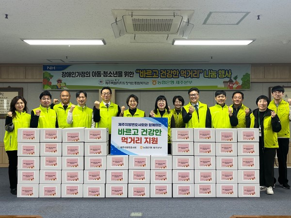 NH농협은행 제주본부(본부장 고은정)는 지난 18일 제주지방변호사회(회장 고영권)와 함께 제주특별자치도 장애인종합복지관(관장 고경희)에서 장애인 가정의 아동·청소년을 위한 ‘바르고 건강한 먹거리’ 지원 행사를 펼쳐 이웃에 사랑의 온정을 전했다.