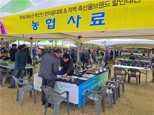 농협사료 전남지사(지사장 박래혁)는 지난 12일 화순축협이 개최한 ‘제1회 화순군 ’축산인 한마음대회와 적벽 축산물 브랜드 할인대전’에서 홍보부스를 운영하며 지역 축산농가와의 현장 소통을 강화했다.