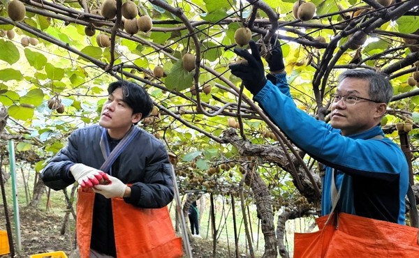 이날 일손부족으로 어려움을 겪고 있는 농가을 찾아 참다래 수확 봉사활동을 하며 구슬땀을 흘렸다.