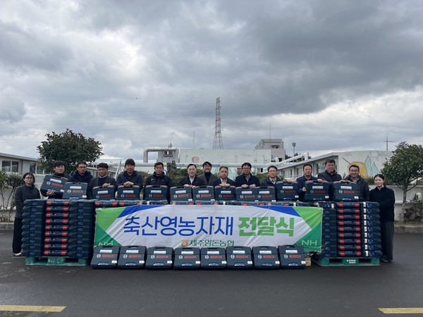 제주양돈농협(조합장 고권진)은 지난 18일 제주양돈농협 가축분뇨공동자원화공장에서 조합원 양돈농가의 생산성 향상과 경영비 절감을 위해 축산영농자재를 지원했다.
