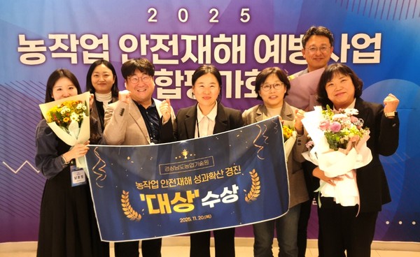 경상남도농업기술원(원장 정찬식)은 20일 농촌진흥청이 주최한 2025년 농작업 안전재해예방 성과확산 전국 경진대회에서 ‘대상’을 수상하는 영에를 안았다.
