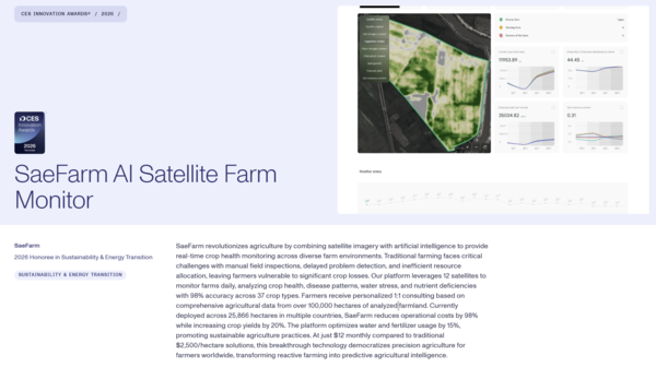 이 기술은 내년 1월 열리는 CES 2026에서 ‘SaeFarm AI Satellite Farm Monitor(새팜 농림위성 인공지능 분석)’ 서비스로 출품돼 공개될 예정이다.