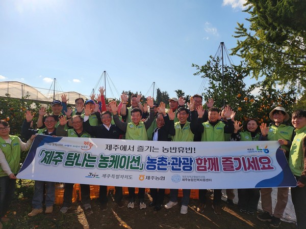 농협유통은 지난 20~21일 이틀간 서귀포농협 관내 취약 농가를 방문해 감귤수확 일손돕기를 실시하고 ‘제주 탐나는 농케이션’ 프로그램에 참여했다.