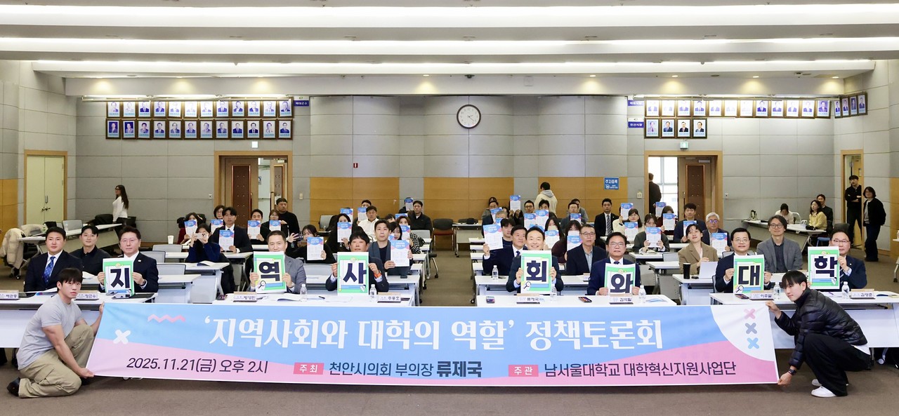 한편 류제국 의원은 천안시청에서 ‘지역사회와 대학의 역할’을 주제로 한 정책토론회를 개최해 학령인구 감소와 지역소멸이라는 현실적 위기에 대응하기 위한 지역–대학 협력 모델을 논의하는 장을 열었다.