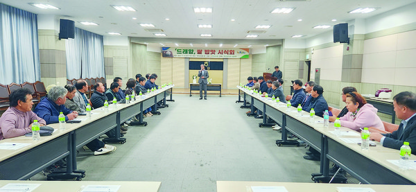 김득추 조합장은 인사말에서 “오늘 행사는 우리 지역의 주재배 품종인 신동진보다 향과 맛이 훨씬 뛰어나고, 품질이 아주 우수한 벼 생산을 위한 첫걸음”이라며 “앞으로 회원들과 더욱 노력해 드래향을 익산지역 대표 브랜드 쌀로 육성하겠다”고 밝혔다.