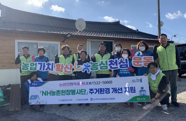 농협강진군지부(지부장 장영조)는 지난 21일 강진남부농협(조합장 최길선), 농가주부모임강진군연합회(회장 배부자)와 함께 ‘농심천심(農心天心) 운동’의 일환으로 칠량면에 거주하는 돌봄어르신 가구의 노후주거환경개선 지원사업을 실시했다.