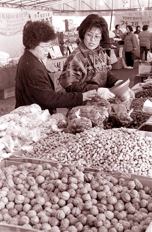 가락시장 종사자들에 따르면 정월대보름이 1주일여 남겨 놓고 있지만 장이 형성될 기미를 보이지 않고 있다. 땅콩 호도등은 관세만 물면 수입할수 있도록 돼 있어 국내가격이 급등하면 언제든지 수입산이 유통돼 국내산을 대체할 태세이다. 최소시장접근(MMA)방식으로 외국산이 반입되고 있는 밤과 잣도 고가인데다 수요량도 많지 않아 보름 대목 특수를 기대하기 어려운 실정이다.