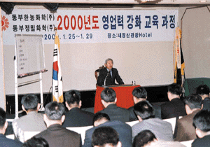 " 동부한농화학주식회사(대표이사·우종일)는 최근 전북 정읍에서 2000년 사업활성화를 위한 영업전문화 교육을 실시하고 「농업인을 위한 최고의 서비스 지원」을 다짐했다.
