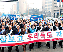 수협중앙회는 일본의 독도조례 제정을 규탄하고 우리 독도 사수 의지를 천명하기 위해 지난 23일 독도보전 궐기대회를 갖고 성명서를 채택한 뒤 가두행진을 벌였다.