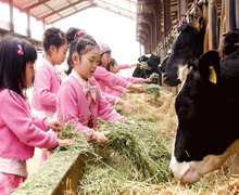 지난해 소비자들의 높은 호응 속에 치러진 낙농체험 가족여행이 오는 23일 전국 3개 권역으로 확대돼 시작된다. 사진은 올해 낙농진흥회와 함께 우유홍보에 나설 꼬마 가수 그룹 ''7공주'' 가 체험목장인 경기 용인 소재 농도원 목장에서 젖소에게 조사료를 주며 즐거워하는 모습.