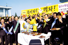 열린 우리당은 최근 조류인플루엔자 과잉보도로 인해 닭고기 소비가 감소되고 가격이 하락돼 양계농가의 어려움이 가속화됨에 따라 지난 17일 서울 여의도 국회 앞 마당에서 가금 축산물 시식회 및 소비촉진 캠페인을 벌였다.