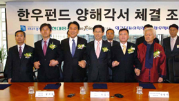 경기도는 지난 12일 서울 여의도 현대증권에서 김문수 경기도시자, 김지완 현대증권사장, 김범석 한국투자신탁운용사장, 남길우 양평축협조합장, 김인필 경기북부한우조합장, 임관빈 이천한우회장 등이 참석한 가운데 현대증권과 한우펀드 양해각서(MOU)를 체결했다고 밝혔다.