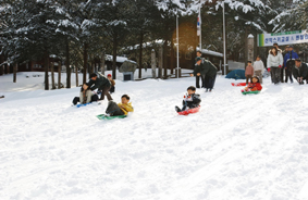 겨울 눈 덮인 자연휴양림이 겨울 전통 민속놀이 체험장으로 각광받고 있다.