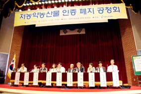 조현선 환경농업단체연합회 회장은 “저농약이 존속되면 어렵게 재배하고도 제대로 평가받지 못하고 있는 유기·무농약 농가들이 결국 영농을 포기할 수 밖에 없다”며 “사과·배·참외를 제외하곤 친환경농업인 들 역시 유기농업으로 가야 한다는 데 동의하고 있어 이들을 적극 육성·지원키 위해서는 저농약 인증은 폐지돼야 한다”고 말했다.
