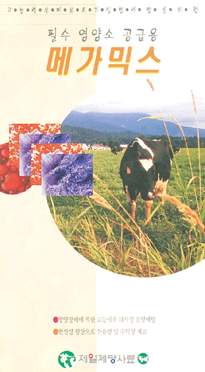 " 제일제당 사료본부(본부장 이태호)는 최근 고능력우의 요구량에 맞는 필수 미네랄 및 나이아신 비타민이 풍부한 "메가믹스"를 출시했다.