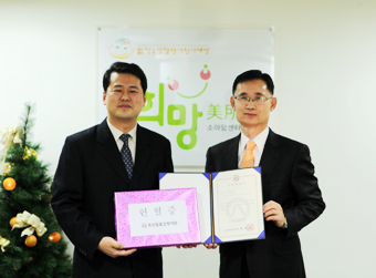 최형규 원장을 비롯한 임직원은 최근 군포시를 방문해 매월 급여의 일정액을 공제해 마련한 1000만원을 사랑의 성금으로 기탁했다.