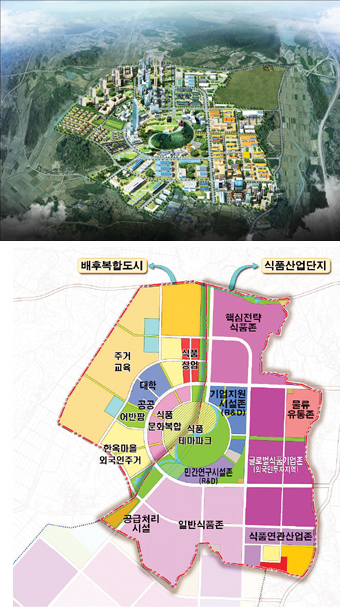 인프라 조성 일환으로 연구·산업 단지, 주거 기능을 집적화한 식품 산업 문화도시를 건립할 예정이다. 232만㎡ 규모의 고부가가치 창출형 산업 단지 조성과 함께 126만㎡ 규모에는 살지 좋은 정주환경을 조성하려는 것이다.