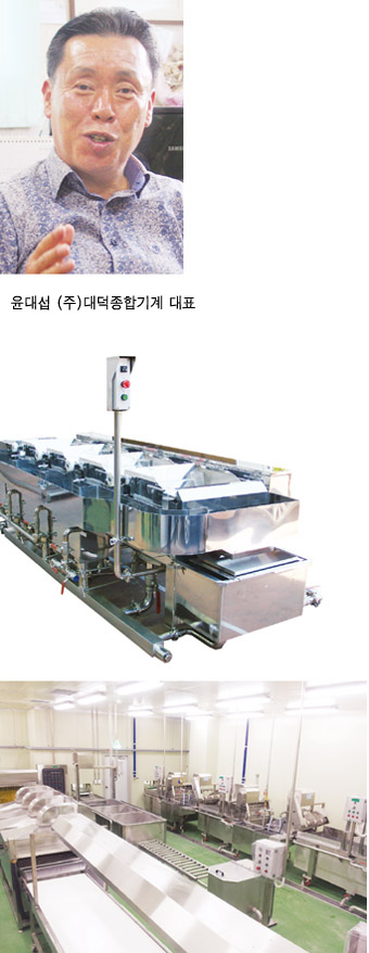 이와 같은 노력으로 개발한 대덕종합기계의 가공기계 중 ‘4단 반전식 세척기’는 다품종생산에 적합한 제품으로 필요에 따라 세척, 살균, 증숙, 냉각기능 등을 선택해 사용할 수 있는 것이 장점이다.