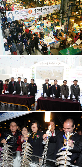 지난 16일 열린 개막행사에는 최규성 국회 농림축산식품해양수산위원장과 전병헌 민주당 원내대표, 윤명희 의원(새누리, 비례), 윤진숙 해양수산부 장관, 문충실 동작구청장 등 정관계인사와 이종구 수협중앙회장, 박재영 한국수산회장, 장경남 한국원양산업협회장 등 수산업계 주요 인사들이 참여해 부스에 마련된 각종 수산물 무료시식행사와 먹거리 장터를 돌며 수산물 소비촉진과 안전성 홍보에 나섰다.