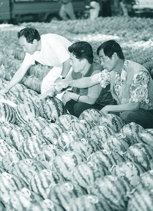 가락시장내 (주)경진청과 관계자는 “구매물량중 50%는 재고로 남아 있는 실정”이라며 “수박은 유통기한이 1~2일밖에 안돼 다소 밑지더라도 팔 수 밖에 없다”고 토로했다.